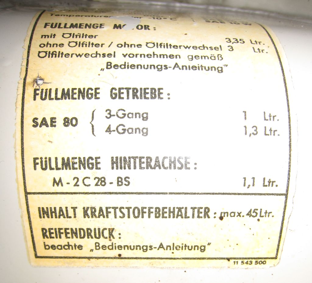 Untere Seite Wartungsaufkleber \'64