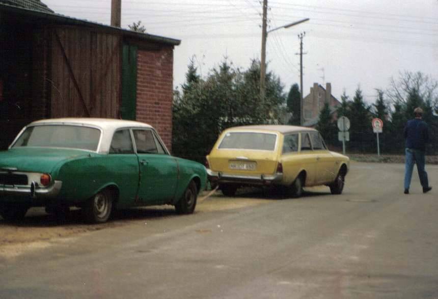 Modenagrünes Restaurationsobjekt mit Rückleuchten vom Miststreuer. Lack aus der Ford- Palette von 1974, Consul, Taunus etc.